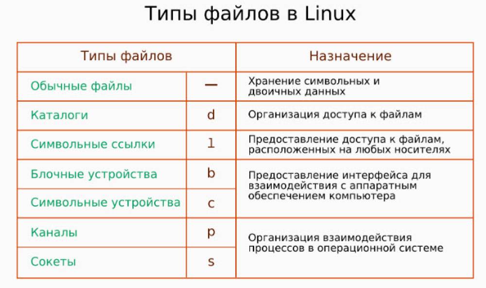 В Linux всего 7 типов файлов.