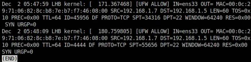 | [UFW ALLOW] | Несмотря на уровень протоколирования по умолчанию, если вы добавили правило протоколирования, оно будет регистрировать каждую деталь, связанную с этой службой, а UFW ALLOW указывает на то, что пакет был разрешен. |