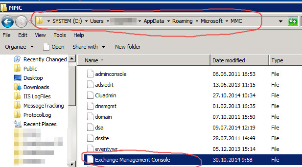 C:\users\%USERNAME%\AppData\Roaming\Microsoft\MMC\ и удалите файл Exchange Management Console.